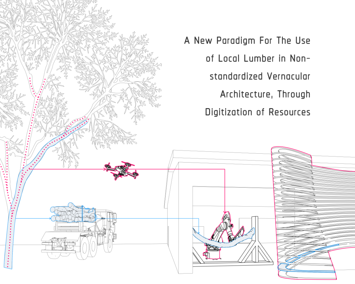 The following research explores alternative methods to engineered wood processes, intending to use locally sourced timber, and reducing the overall waste in engineered wood processes through integrating material resources and fabrication methods in the early design process.