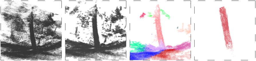 Segmentation algorithms are used to cluster different parts of the point cloud together: ground, trunk, leaves, etc. This process allows us to access each of these clusters separately, which in effect enables the measurements of different types of data in the forest. Tree Trunks are our main interest in creating a database.