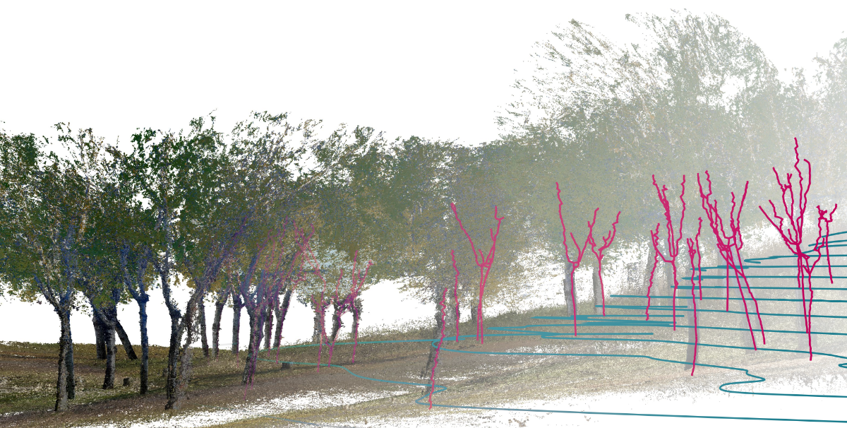 In addition to the tree geometry, topography data can be extracted from forest point clouds, providing exact information about trails, prediction of water flows, sub-canopy vegetation, etc.