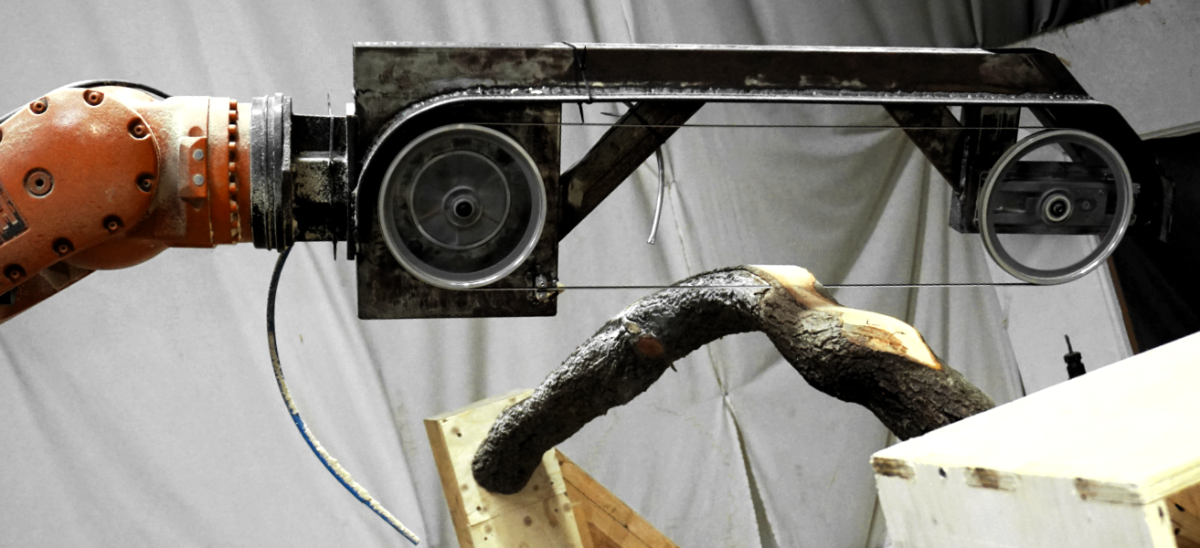 We developed a bandsaw with a resaw capacity of 45cm to be used as the end effector on the robotic arm.