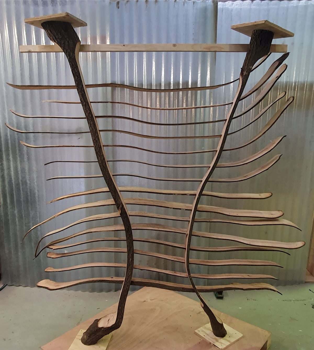 Within 3 days of cutting with our robotic bandsaw, we were able to extract approximately 30 slices with the thickness of 6mm. As the cuts had been done on both sides of the branch, the core of each branch was preserved as well.